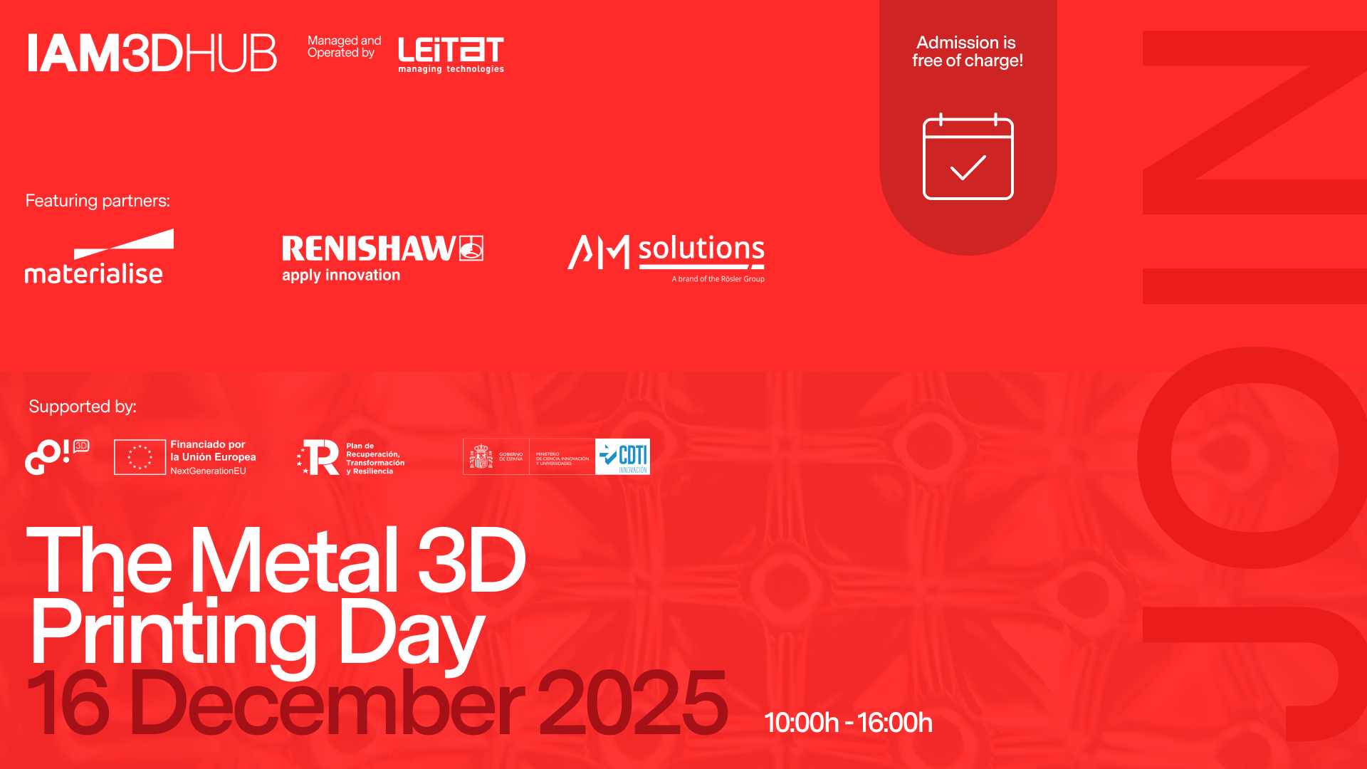 📅 16 de diciembre | 📍 IAM3DHUB – Instalaciones de DFactory Barcelona El próximo 16 de diciembre organizaremos en el IAM3DHUB una jornada técnica especializada en impresión 3D metálica, diseñada...+Read More